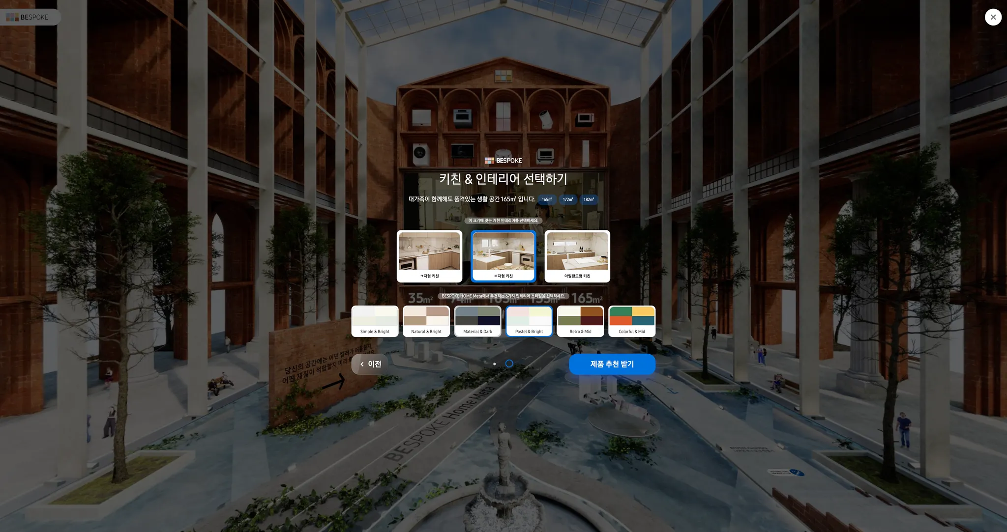 BESPOKE Homemeta의 3D 버추얼 공간은 고객들이 가지는 가장 큰 궁금증, ‘그래서 이 제품이 우리 집에 어울릴까?’에 대한 해답 그 자체입니다. 오프라인 매장에서 직접 봐도 우리집에 어울리는지는 확인하기 어려운 고객을 위해 우리집과 가장 유사한 평형대의 집을 고르고 집 안의 구조와 인테리어 스타일도 고를 수 있는 가상현실을 구성했습니다. 고객은 직접 제품의 종류와 크기, 색상까지 바꿔가며 최적의 제품을 골라볼 수 있도록 한 버추얼 쇼룸에서 자신만의 인테리어를 눈으로 확인할 수 있습니다.