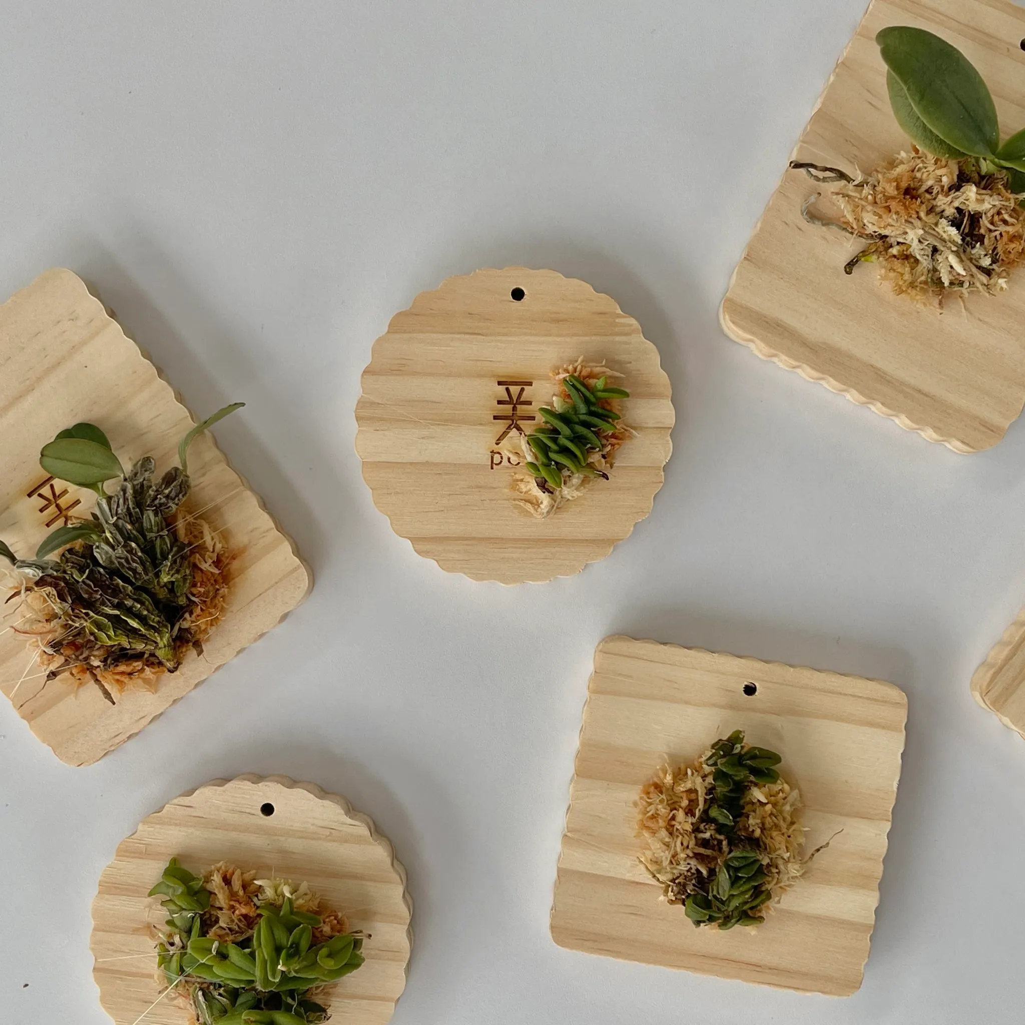 기본 가드닝 클래스 말고도 다른 요일을 선택하면 ‘소형난 목부착 클래스’를 수강할 수 있습니다. 흙이 아닌 나무판에 착생시켜 식물을 키우는 ‘부작’에 대해 이해하고, 폿의 크래커 부작판에 직접 다양한 소형난을 착생시키는 수업입니다. 작은 난의 뿌리가 크래커 부작판 위에 단단하게 자리잡고 새 순을 내는 모습을 볼 수 있습니다!