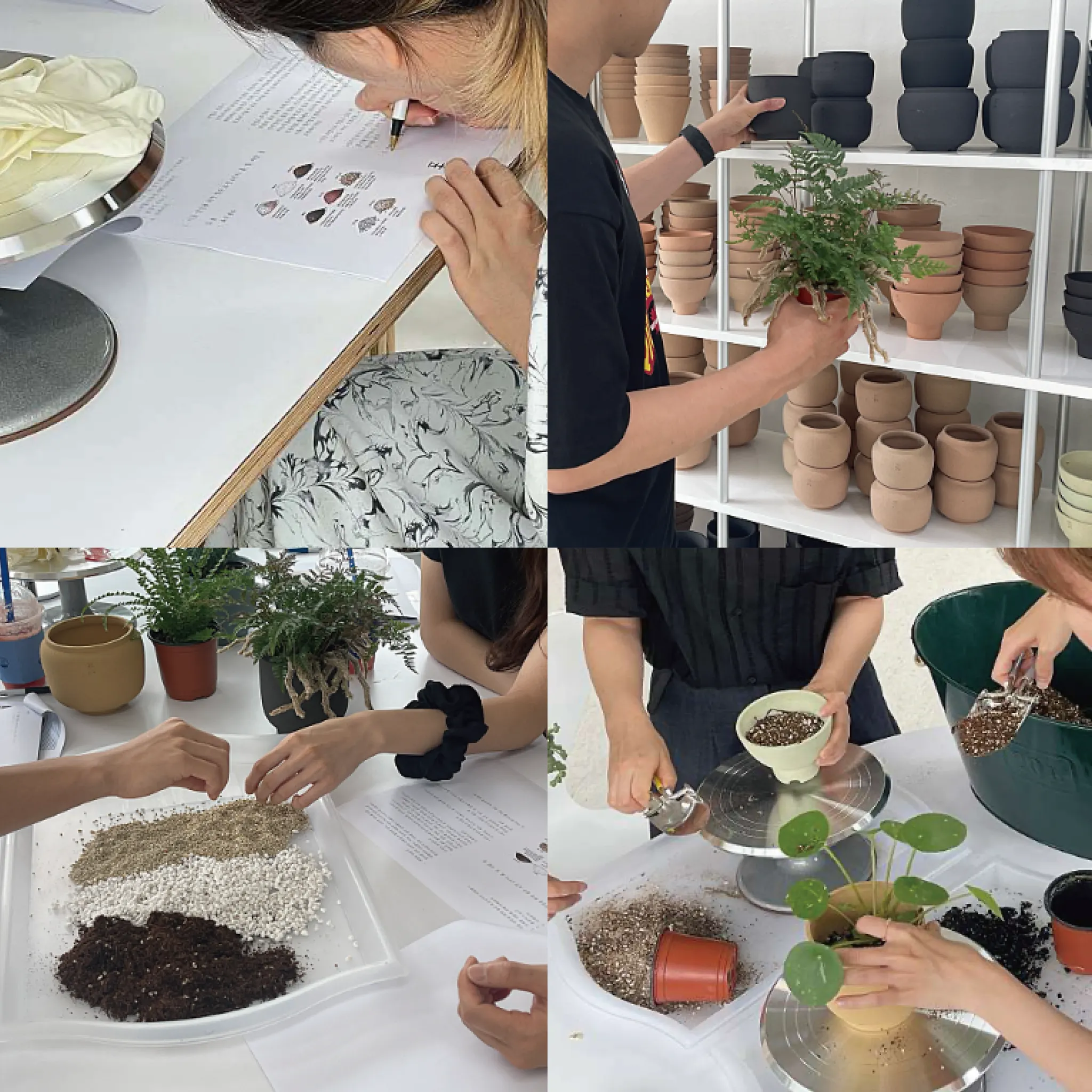 폿의 기본 가드닝 클래스에서는 식물의 생장에 필요한 다양한 이론을 충분히 배우고, 이론에 기반하여 직접 식물에 맞는 흙과 토분을 만져보며 고르고 배합해 볼 수 있습니다.