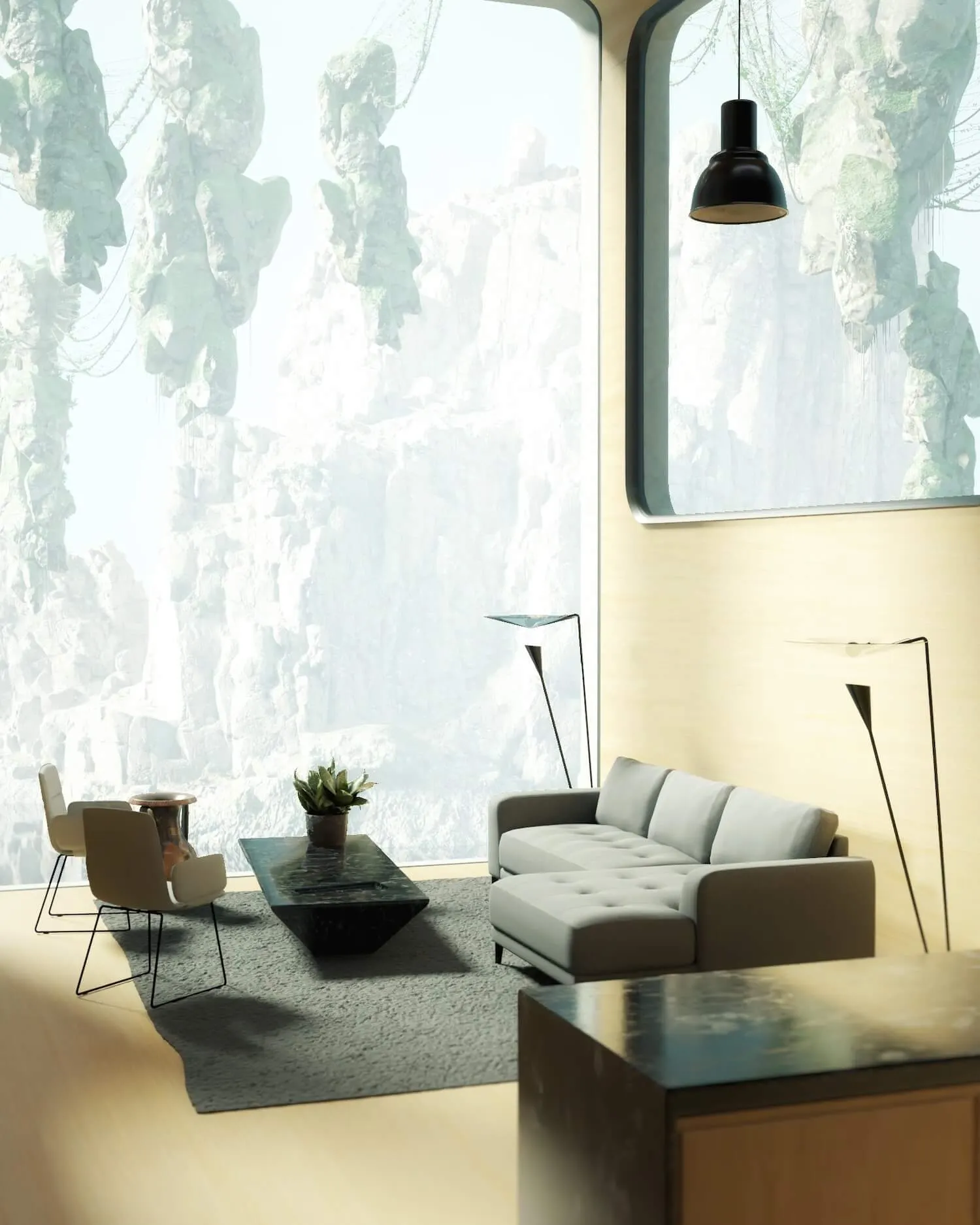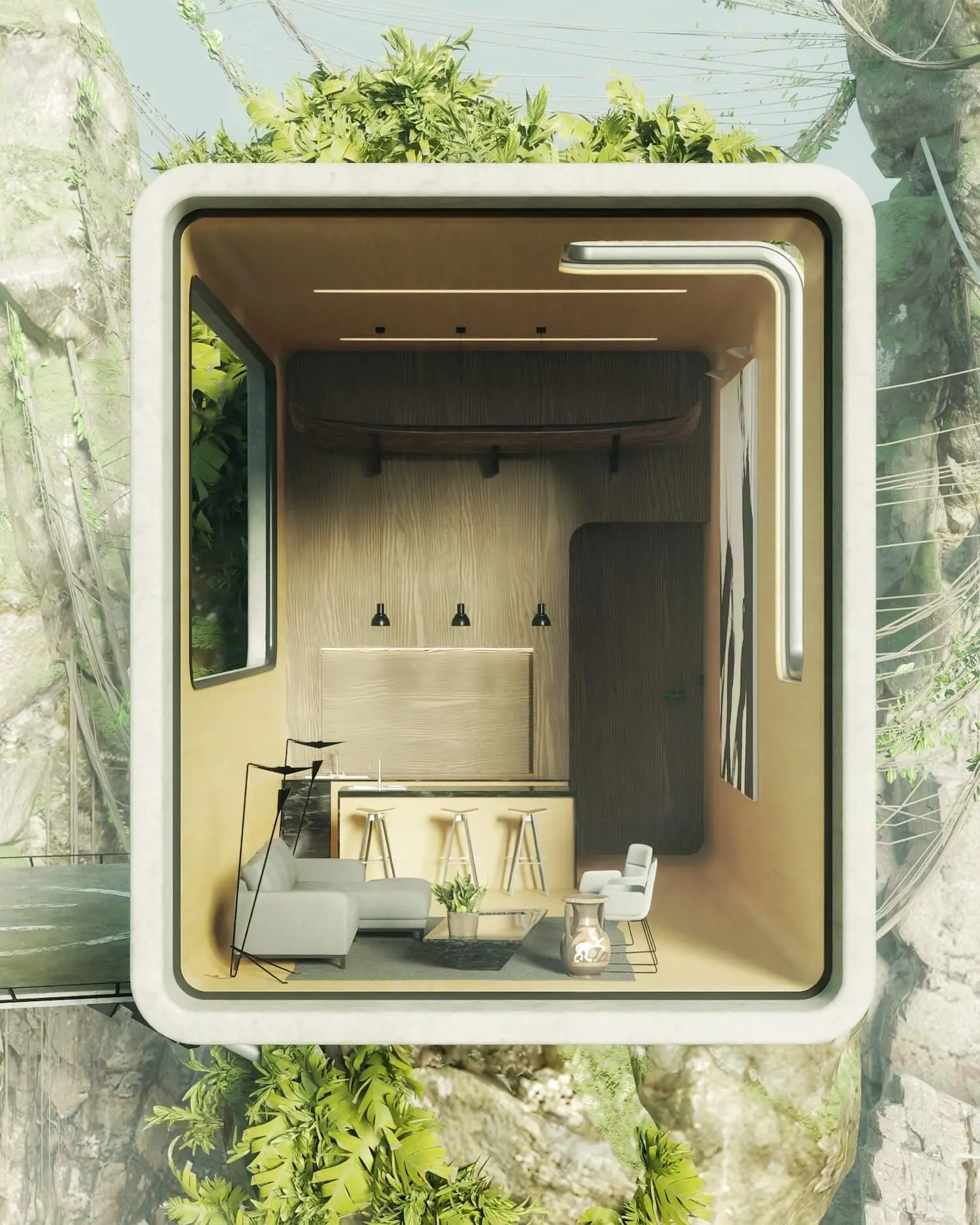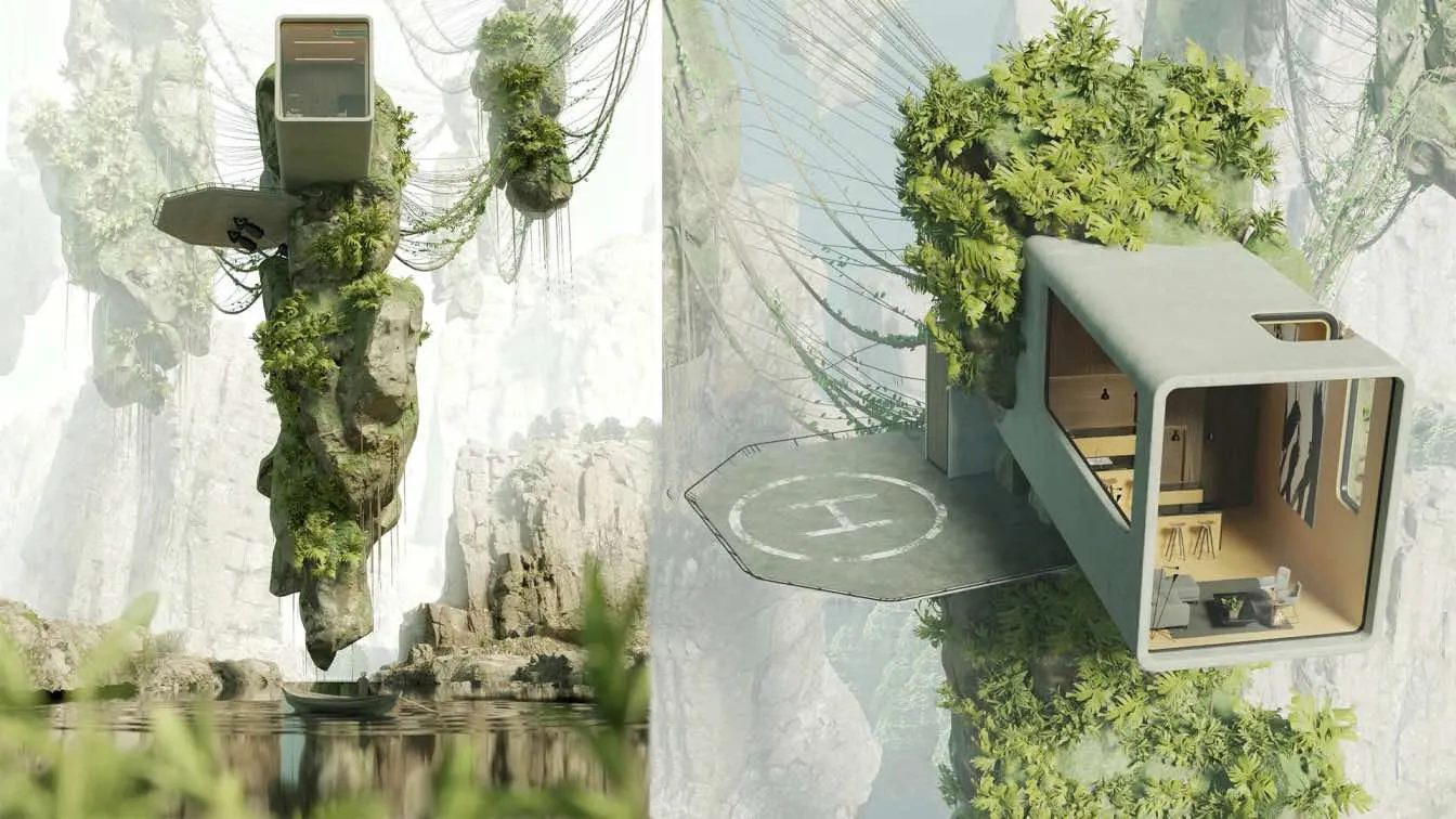 ROHIT DHOTE의 미래건축 시각화 프로젝트는 모두 영화 아바타에서 크게 영감을 받았다고 합니다. 이 프로젝트는 건축 설계를 가상의 환경에 접목시켜, 미래 인간 거주지의 가능성을 탐구하는 데에 목적을 두고 있는데요. 떠다니는 바위 위에 숨겨진 거주지의 가능성과 숨겨져있는 고요하고 자연적으로 아름다운 경험을 선사합니다.