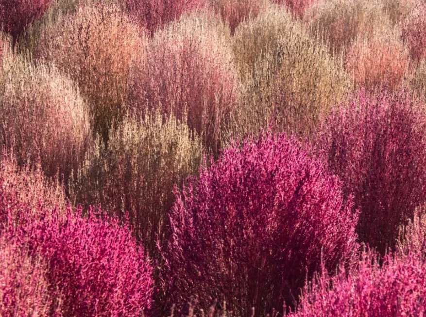 여름 햇빛을 맞으면서 자라는 댑싸리는 초록빛 → 붉은빛 → 황금빛으로 변화하여 계절마다 다른 무드를 볼 수 있는 매력을 가지고 있습니다.