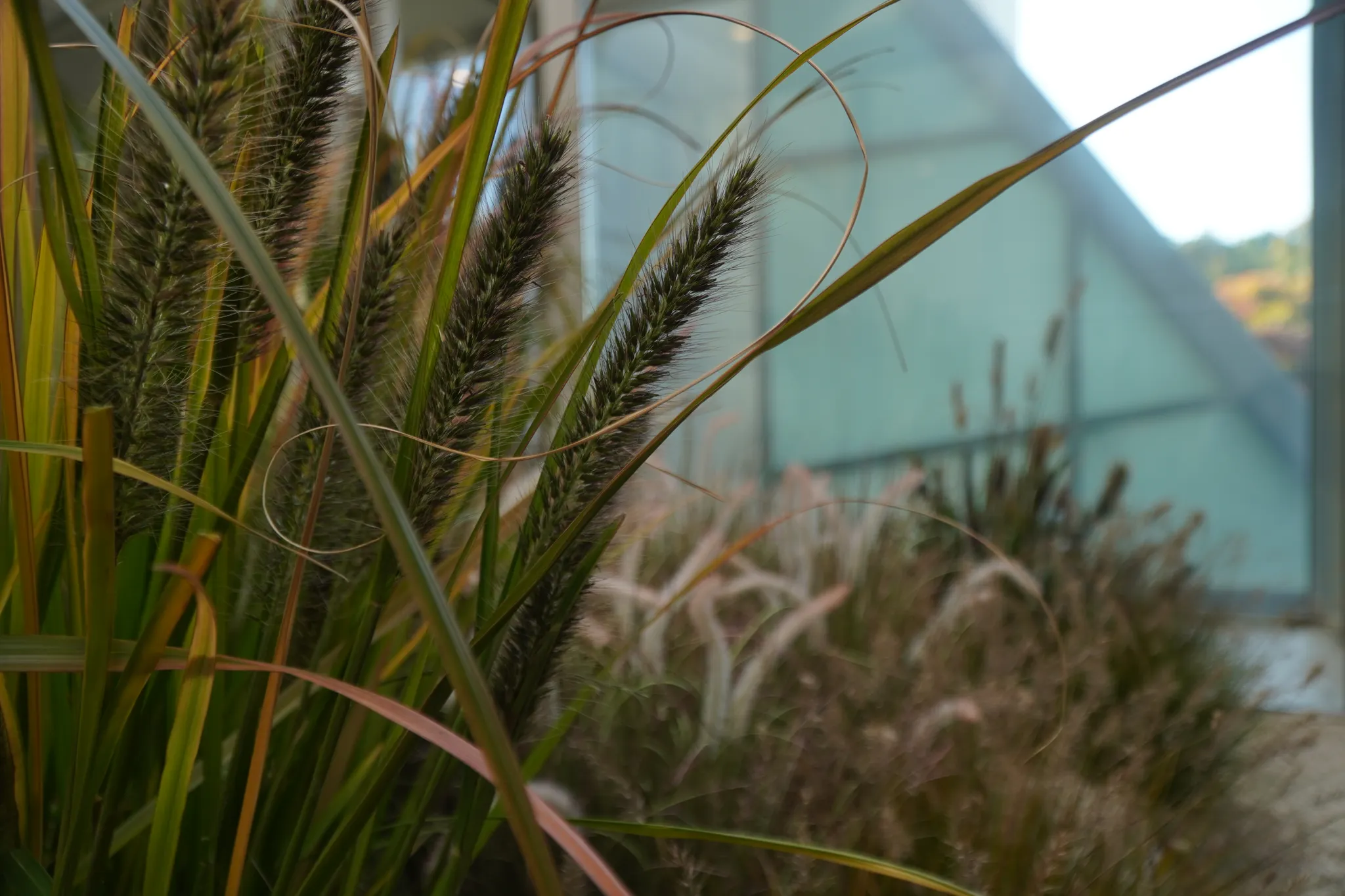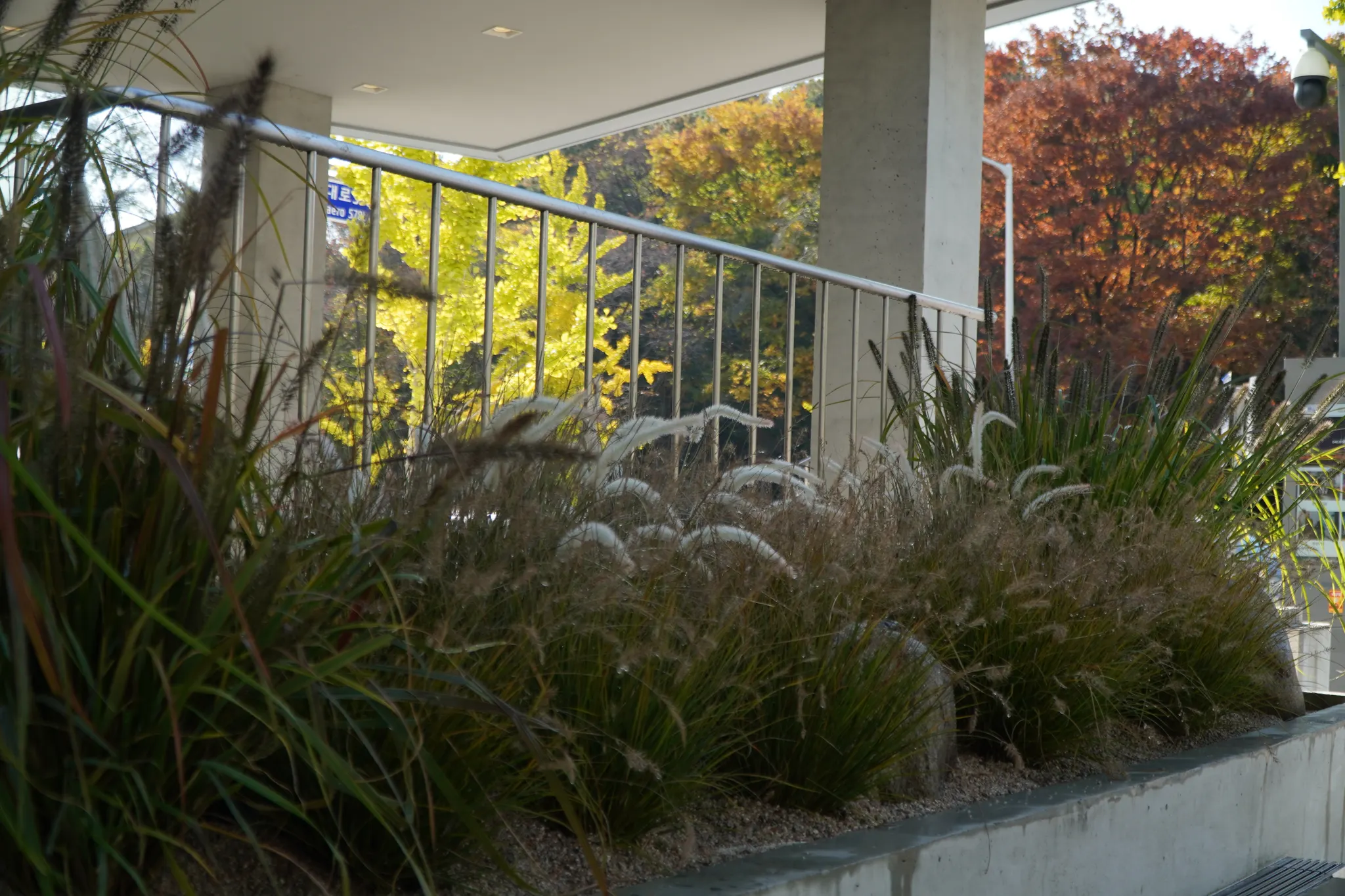 공간을 바라보는 심신의 편안함을 생각하며 식재하였습니다. 억새와 모닝라이트를 부분적으로 채우고, 남은 공간에는 마사토 자갈과 조경석을 함께 배치했습니다.