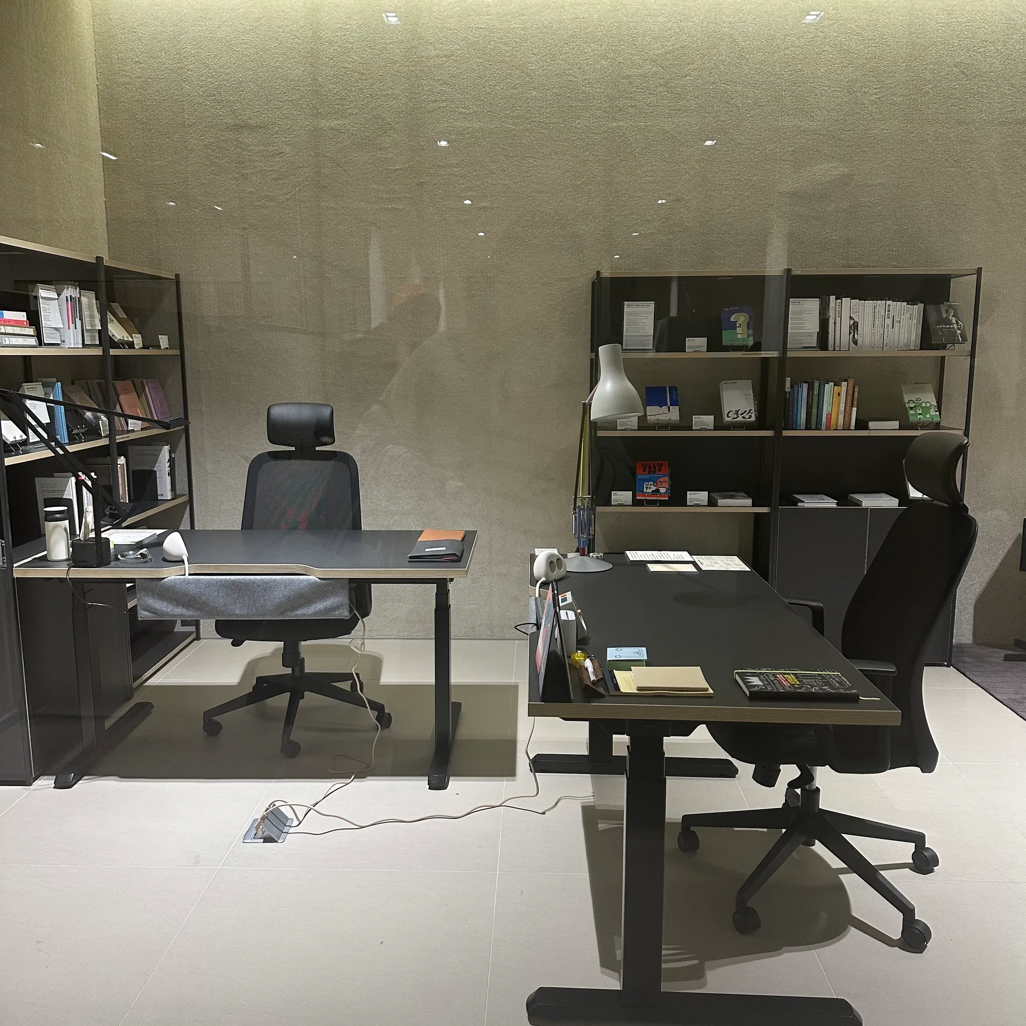 사무실 공간을 꾸미기 좋아하는 터라 책상 위에 이것저것 제가 좋아하는 물건들로 가득하지만 책상의 높이는 제 마음대로 되지 않잖아요? 하지만 모션 데스크는 제가 앉는 습관이나 높이에 맞게 조절할 수 있다는 점이 너무나도 특별한 경험이었습니다. 또한, 각 데스크에 설치된 모니터들은 듀얼 모니터로 업무를 수월하게 할 수 있었습니다.