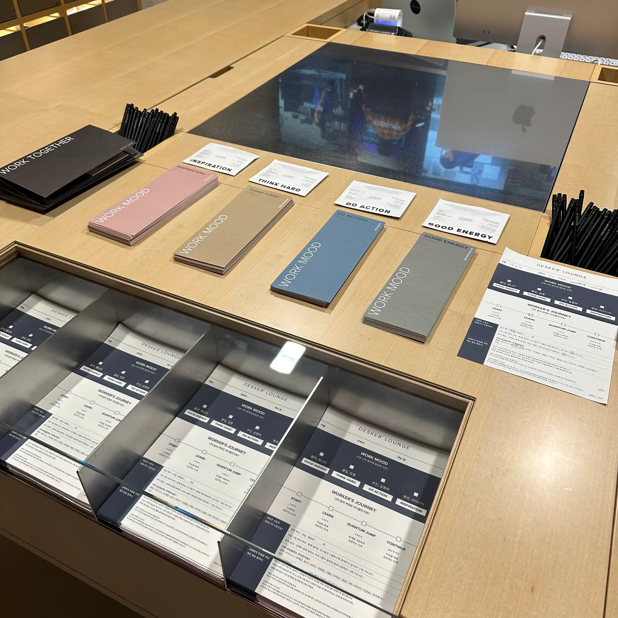 데스커 라운지는 편지를 쓰지 않는 시대에, 책상 위에서 쓰는 편지로 워커들이 연결되는 ‘Letter to workers’ 프로그램을 기획했다고 합니다. 일을 하다보면 생기는 고민들을 ‘먼저 경험해 본’ 워커들에게 고민을 나누며 그 고민을 해소하는 한 장면을 담아둔 듯 했습니다.