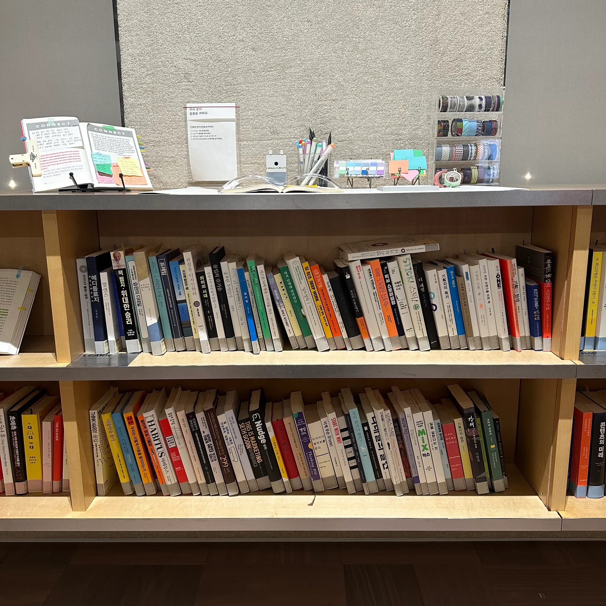 조금 더 안 쪽으로 들어가면 그렇게 연결된 워커들끼리 주고 받은 책들이 있었습니다. 책에 덕지덕지 붙어져있는 작은 메모지들은 책의 내용을 방해하기보다 여러 사람의 생각과 경험을 들여다 볼 수 있는 ‘연결’의 메세지를 받았습니다.