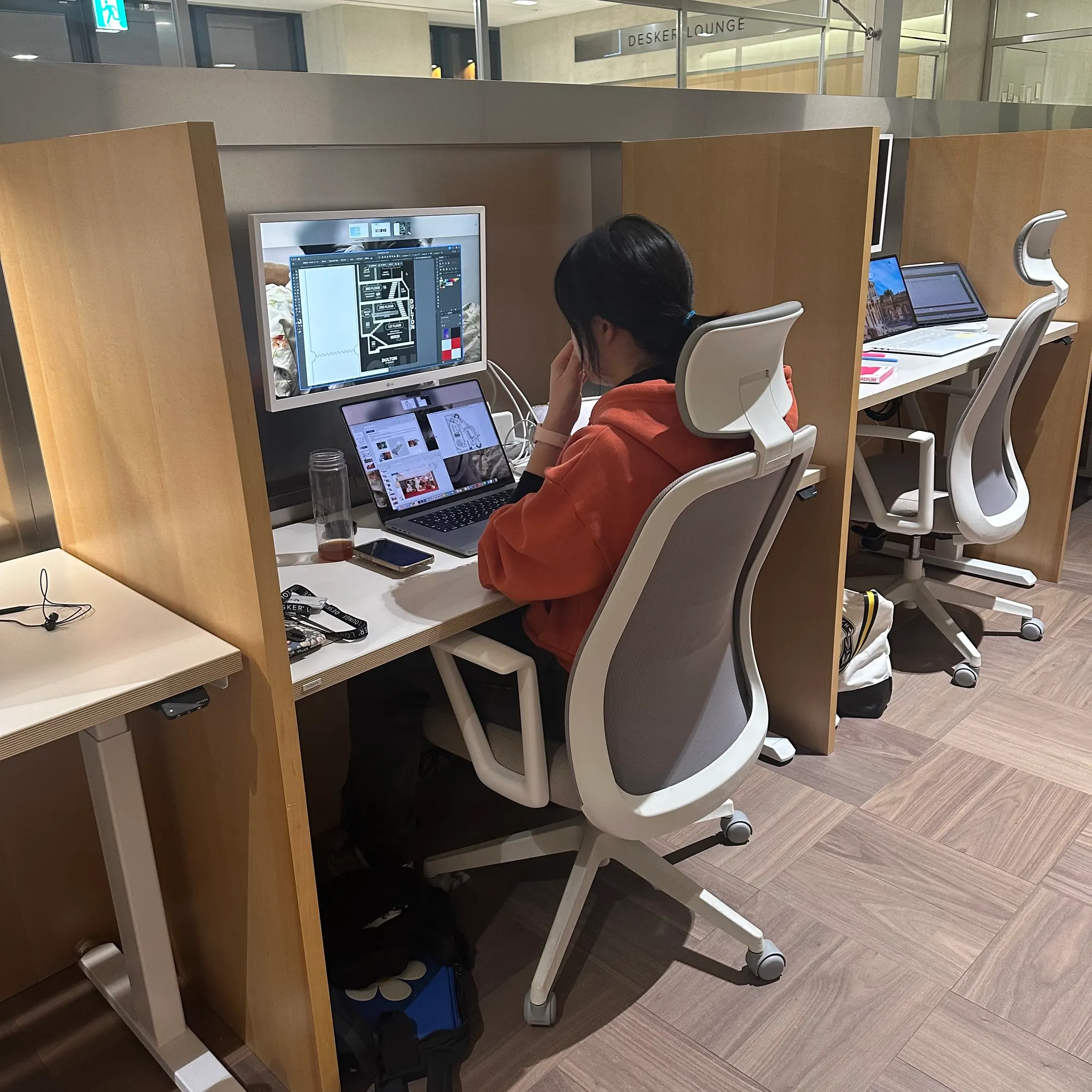 데스커 라운지 홍대의 가장 큰 주제는 ‘연결(Connect)’입니다. 같은 분야 혹은 다른 분야에 있는 다양한 연차의 “일잘러”들이 모여 서로의 고민을 이야기하는 장소가 마려되어 있기도, 그리고 그런 사람들을 위한 “몰입”할 수 있는 공간도 마련되어 있습니다.