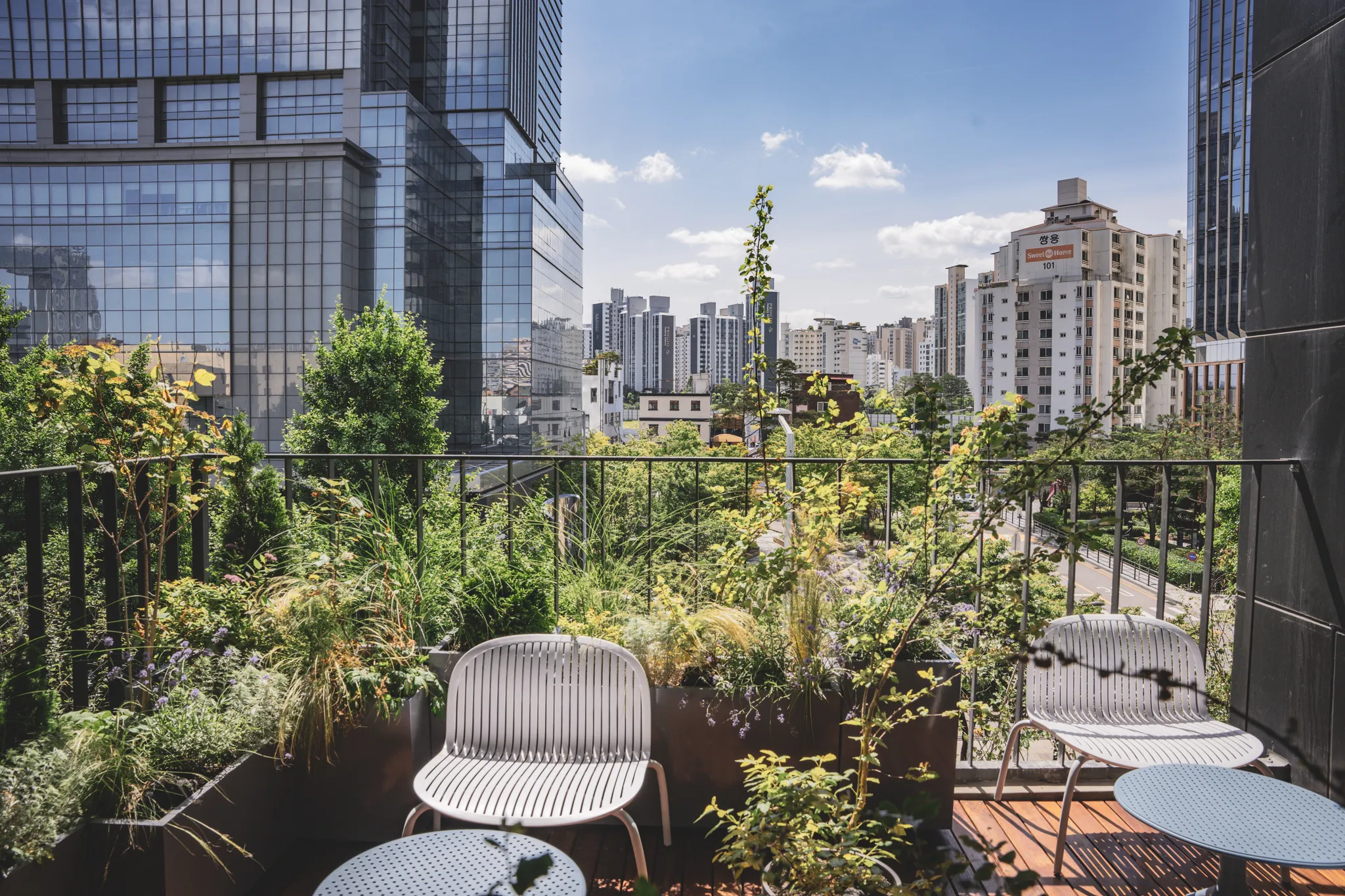 에피소드 용산에 플랜테리어 뿐만 아니라, 야외 공간부 및 테라스까지 연결성 있는 스토리로 이어지는 디자인과 집기 제작, 시공을 진행하였습니다.