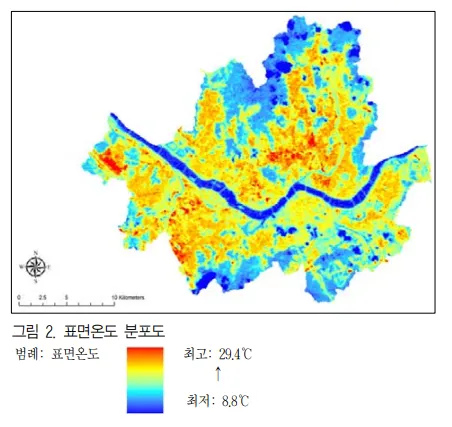 * 윤민호, 안동만(2009), 「위성영상을 이용한 도시녹지의 기온저감 효과 분석」, 『한국조경학회지』 37, 46-47p.