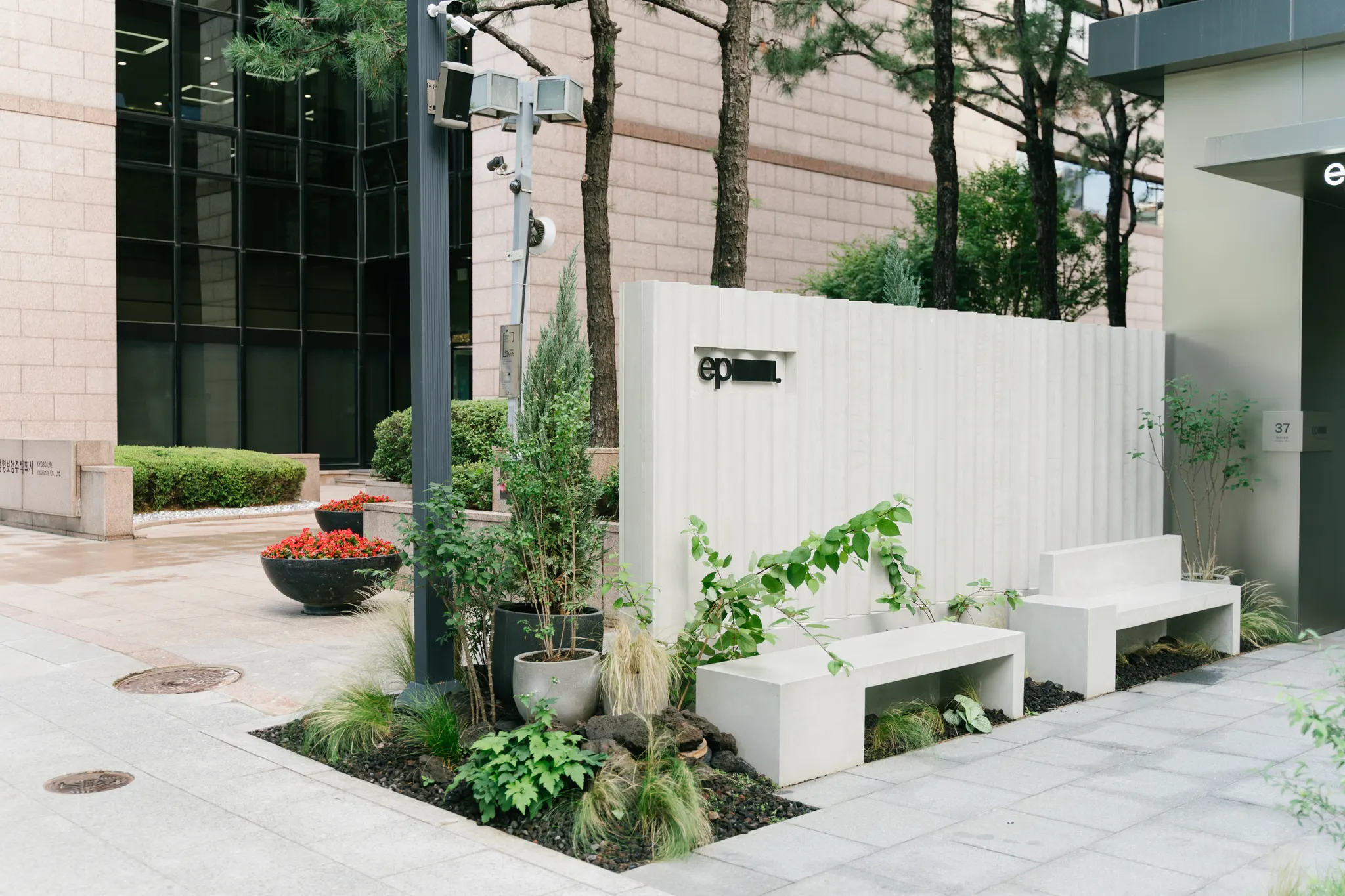 에피소드 용산에 플랜테리어 뿐만 아니라, 야외 공간부 및 테라스까지 연결성 있는 스토리로 이어지는 디자인과 집기 제작, 시공을 진행하였습니다.