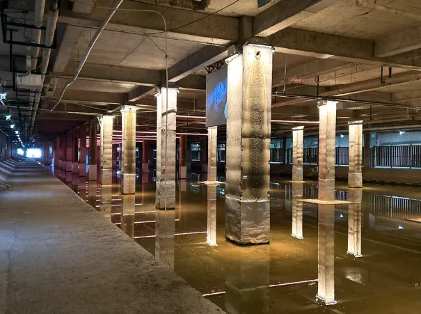 홍제유연은 서울시가 서울 서대문구 홍제동에 있는 유진상가(구 유진맨숀) 지하를 개조한 공공미술 장소에요. 건물을 받치는 100여개의 기둥과 흐르는 물길을 따라 환상적인 분위기의 설치미술, 조명예술, 미디어아트, 사운드아트 작품을 감상할 수 있다고 해요!