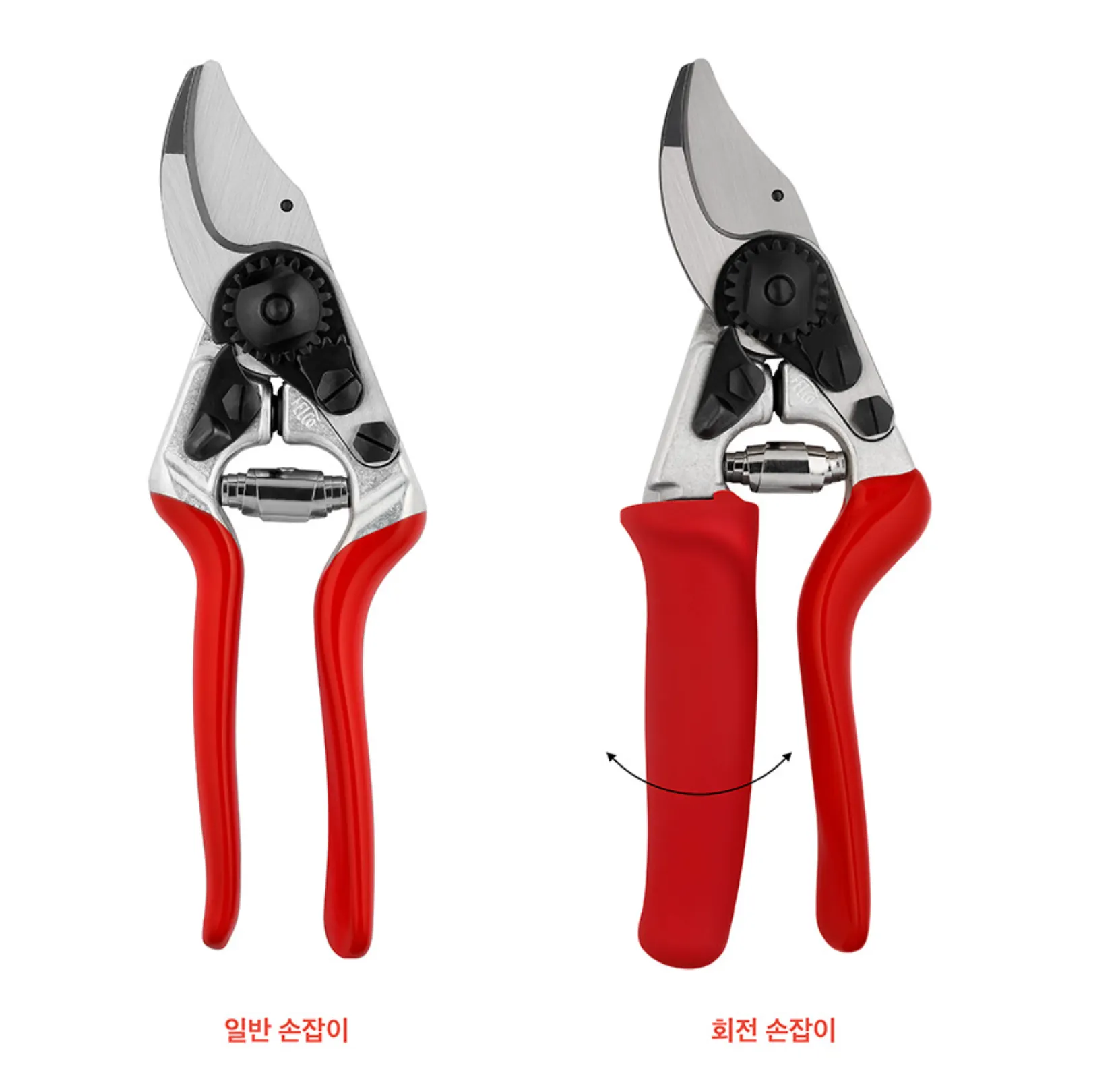 펠코의 손 잡이는 인체공학적으로 설계된 디자인입니다. 적은 힘으로도 절삭력이 좋게 설계가 되어 손목에 무리를 덜어줍니다. 이뿐아니라 펠코가 개발한 회전 손잡이는 힘을 실었을 때 자동으로 손잡이가 함께 움직이면서 손목의 무리를 덜어준다고 합니다.