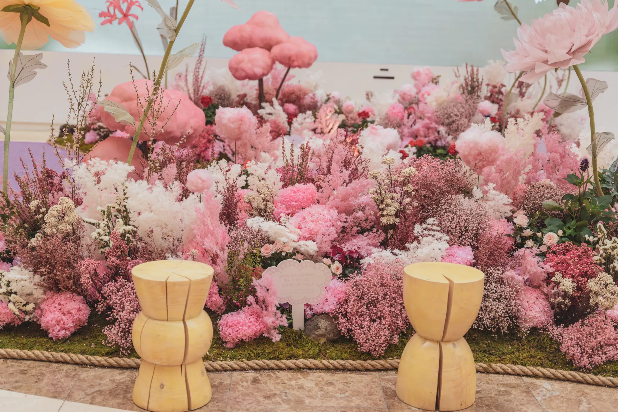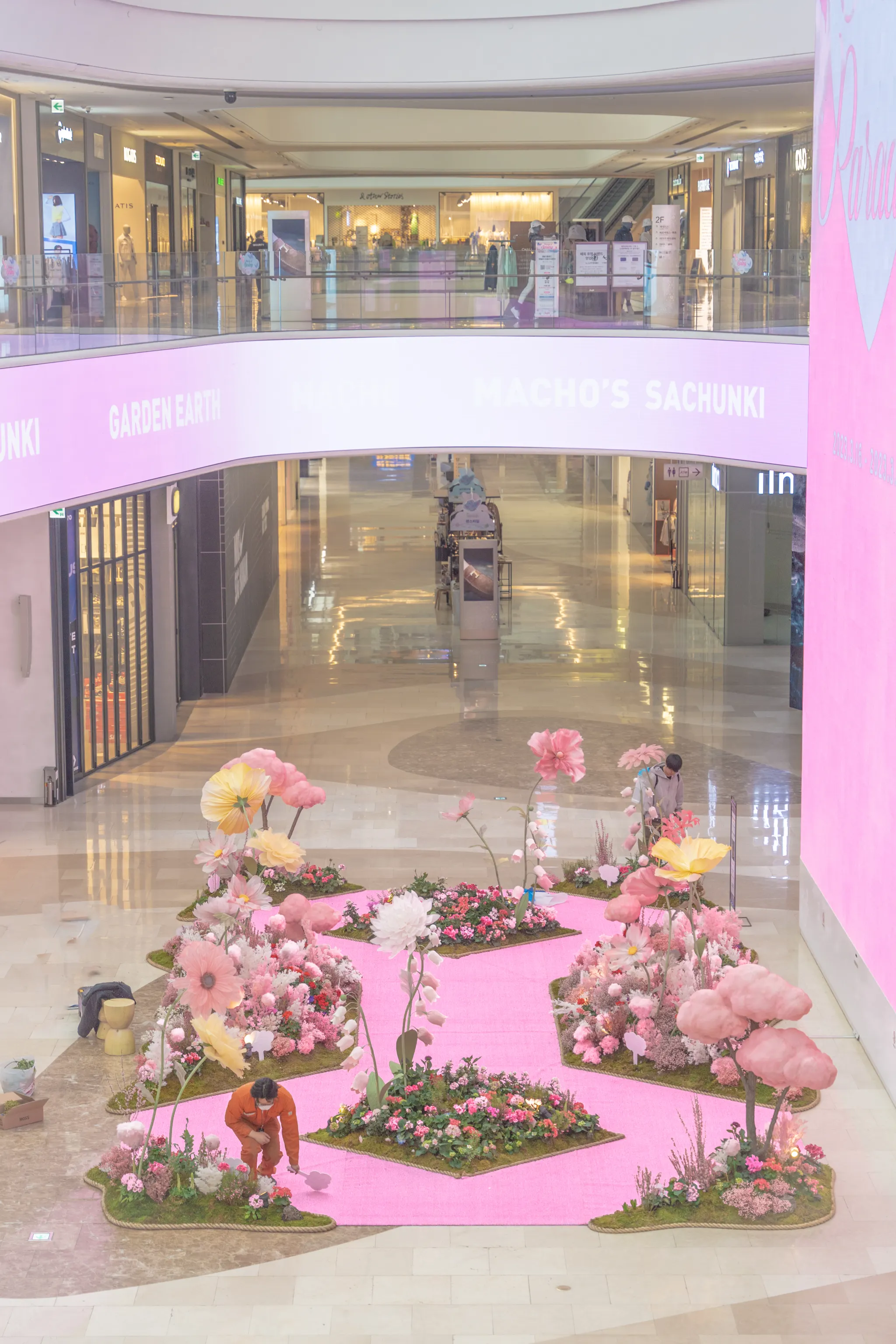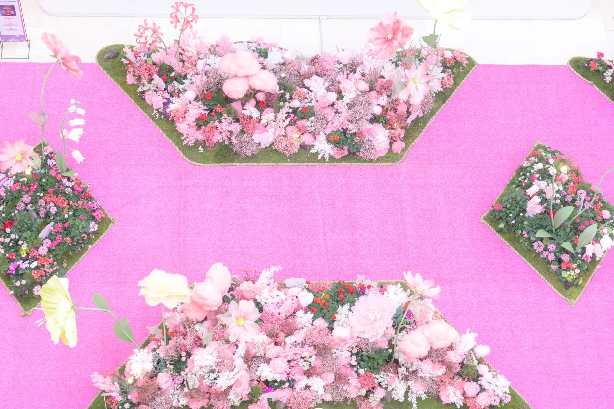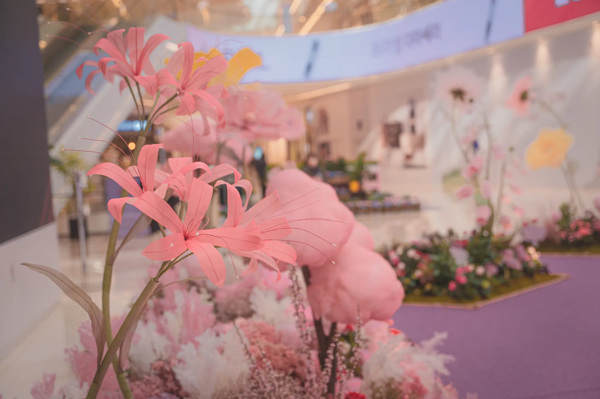 봄의 생동감과 행복함을 느낄 수 있는 ‘핑크’컬러를 모티브로, 다채로운 봄꽃과 더불어 실내에서 느끼는 신비한 무드로 WOW 요소를 넣어, 창의적인 전시공간을 구성하였습니다.