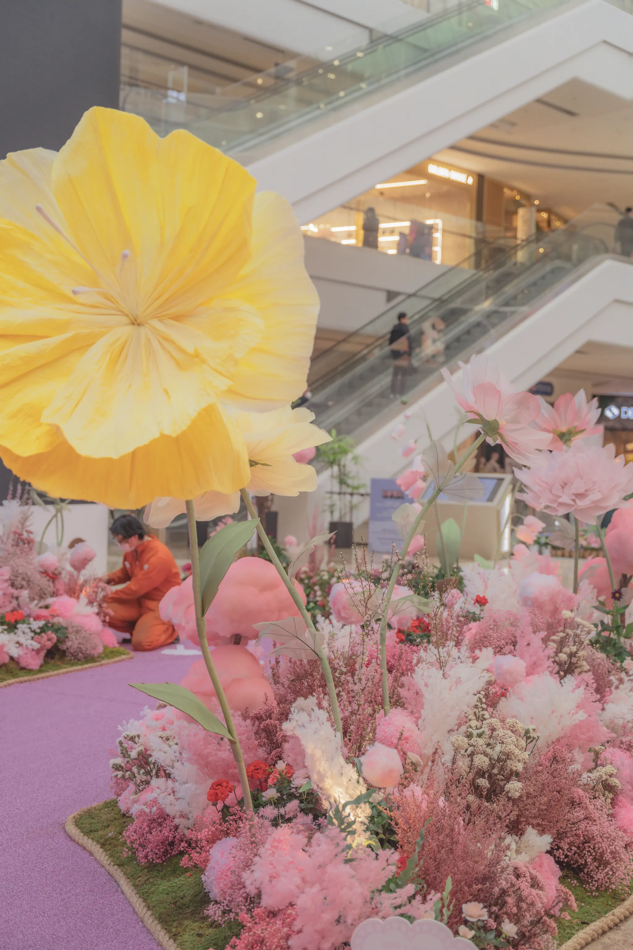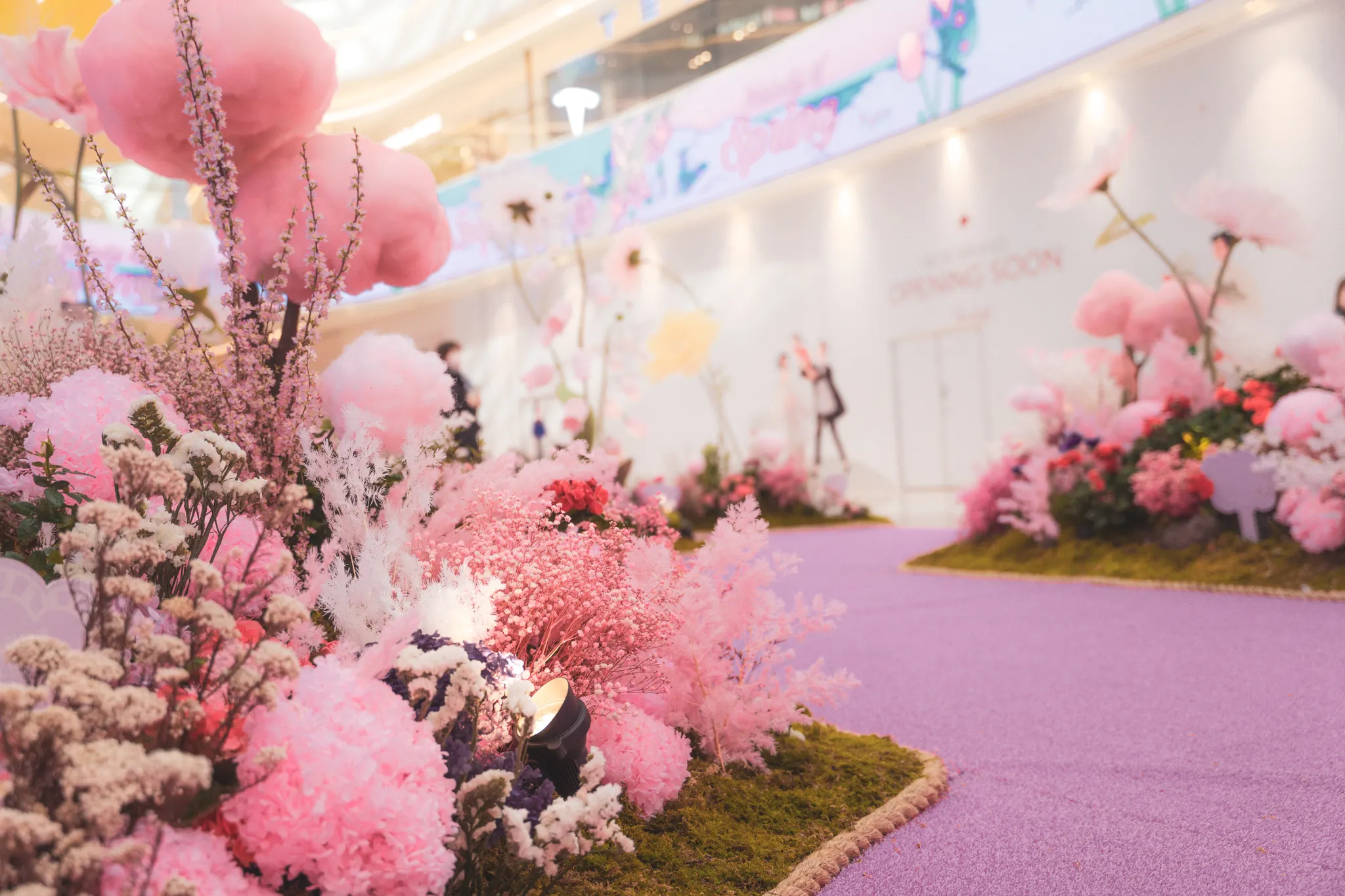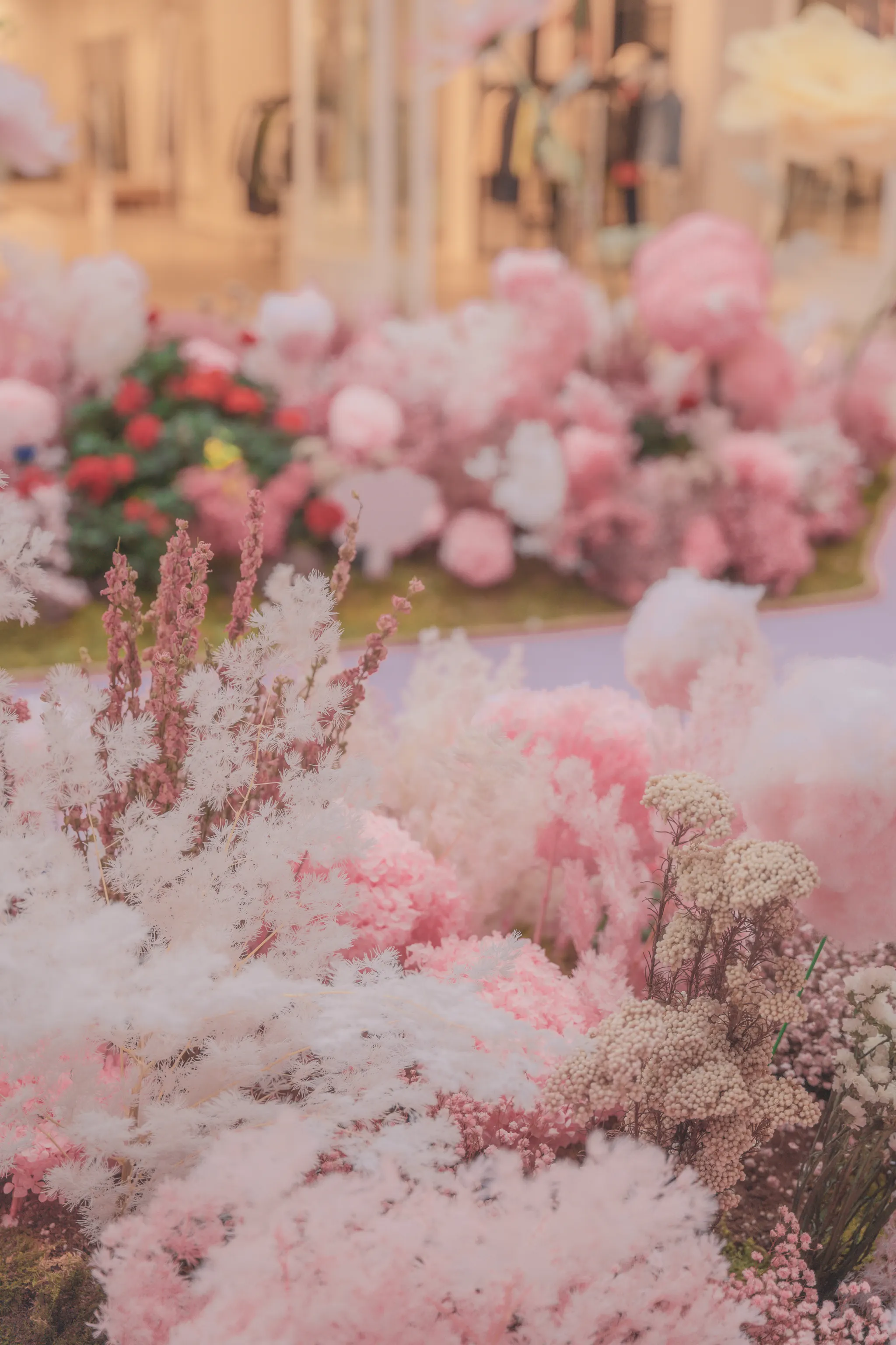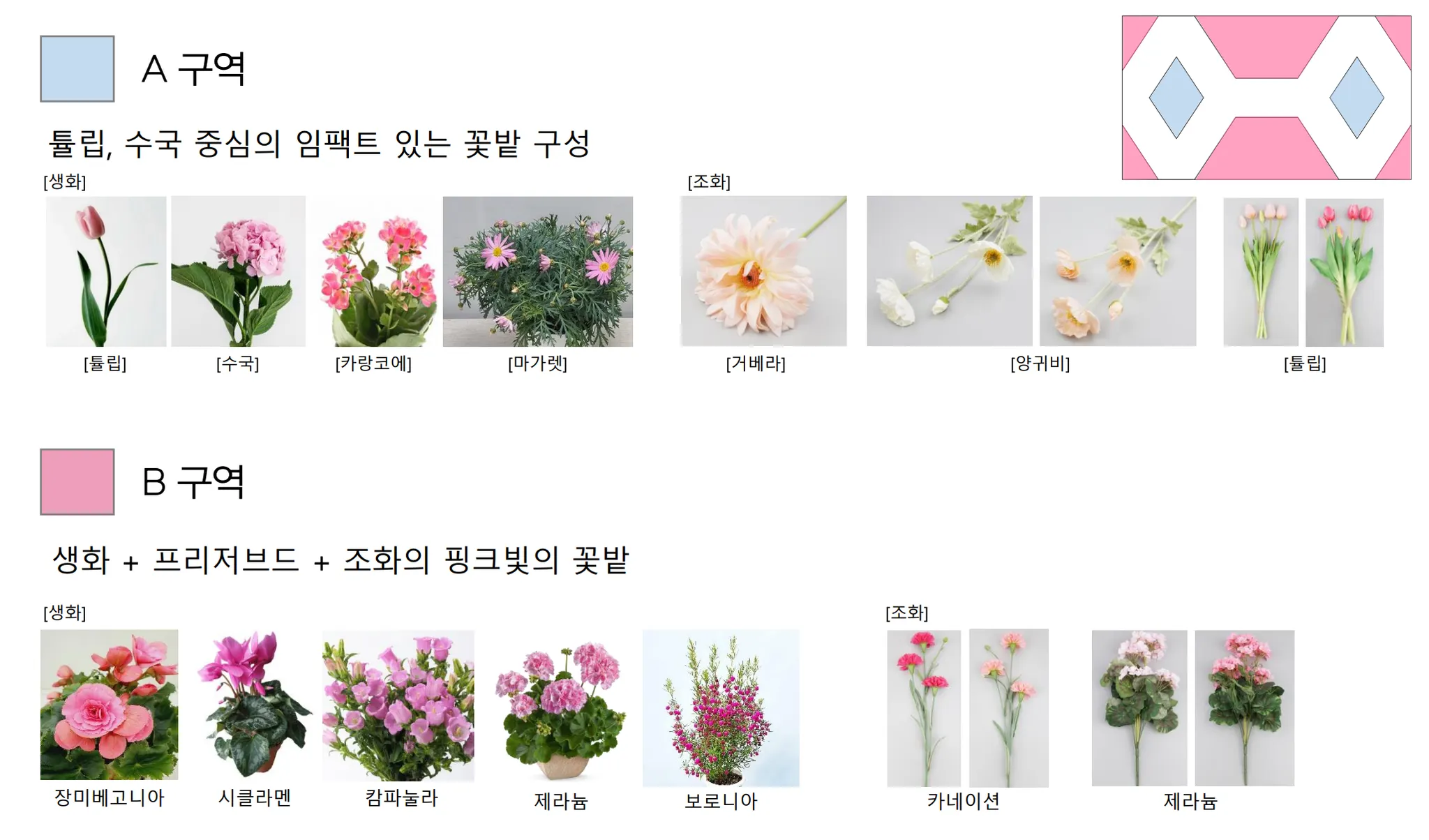 봄의 생동감과 행복함을 느낄 수 있는 ‘핑크’컬러를 모티브로, 다채로운 봄꽃과 더불어 실내에서 느끼는 신비한 무드로 WOW 요소를 넣어, 창의적인 전시공간을 구성하였습니다.