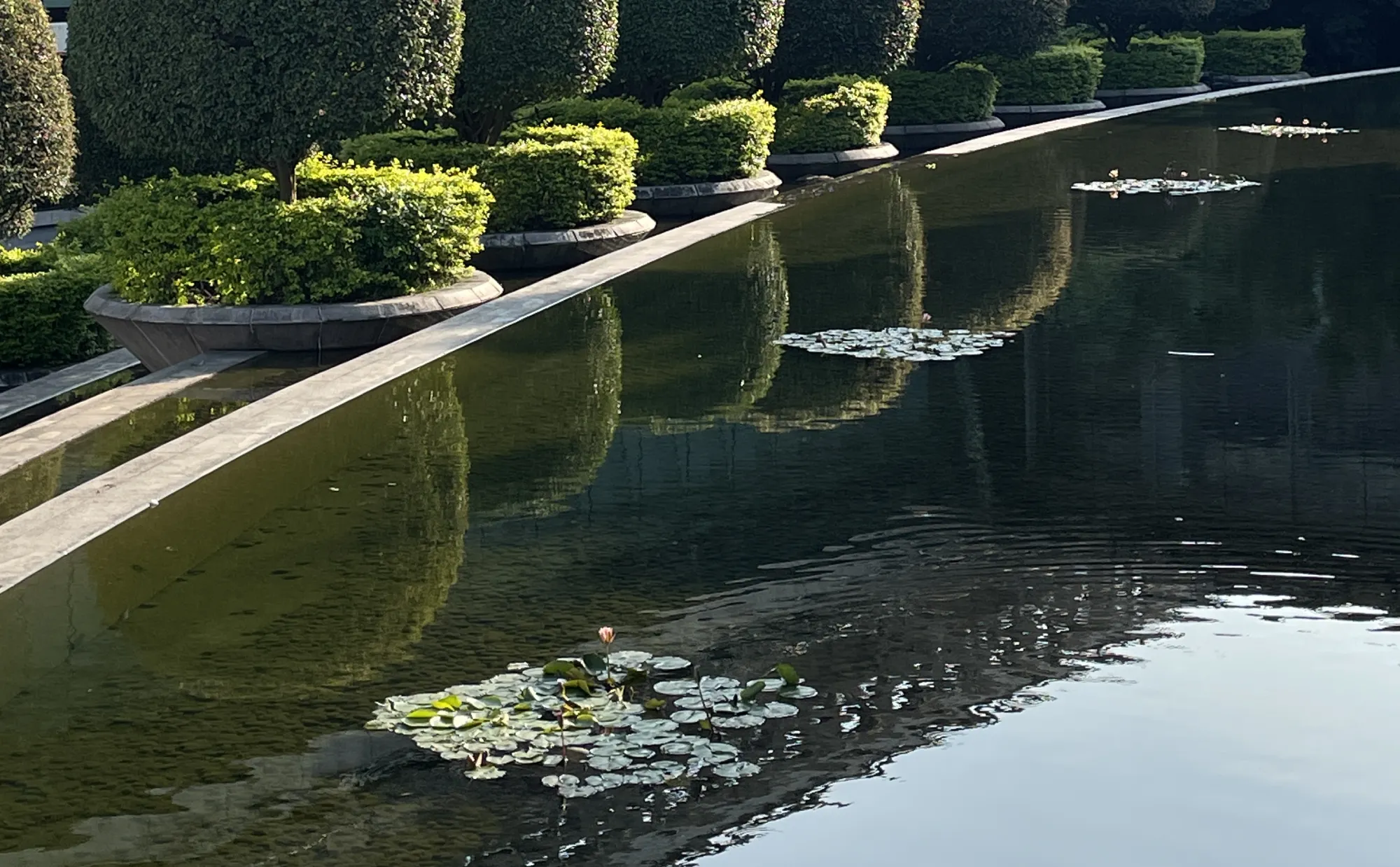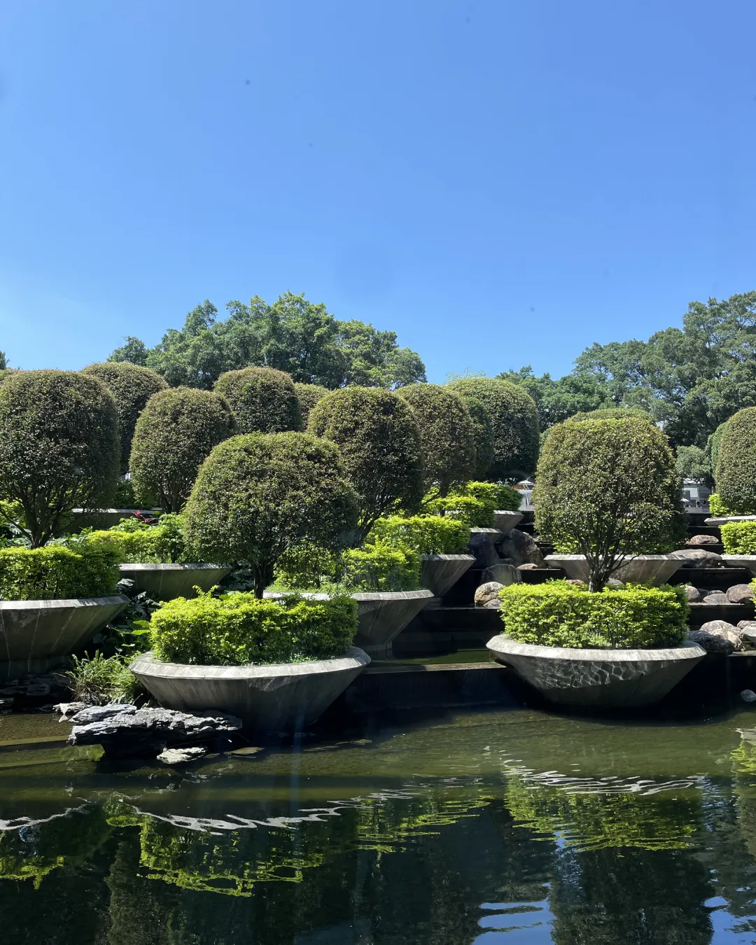 🪷 캔톤페어 조경은 어떻게 되어 있을까요? 저희는 캔톤페어 안쪽 조경도 함께 관찰했어요. 규칙적으로 배치된 화분은 단정한 인상을 주고, 식당가 주변을 둘러싼 물이 있는 정원은 공간의 확장성을 주는 느끼게 했죠. 물 위에 중간중간 연출되어 있는 연꽃은 중국 특유의 동양적인 분위기를 살려주고 있었습니다.