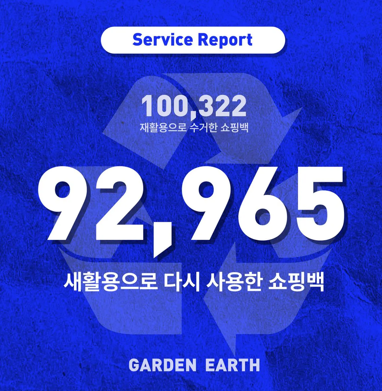 가든어스에서 이용한 종이순환서비스의 기부된 종이가방 수량입니다.