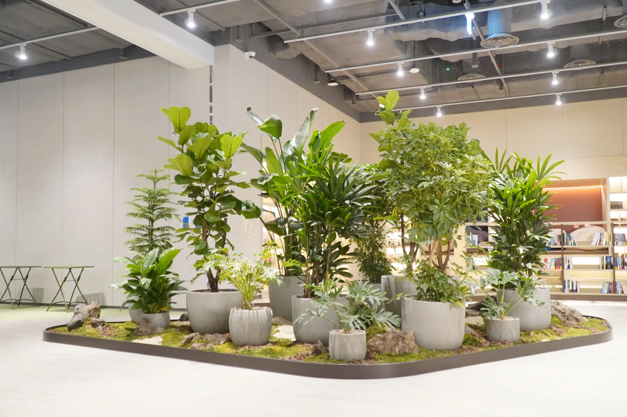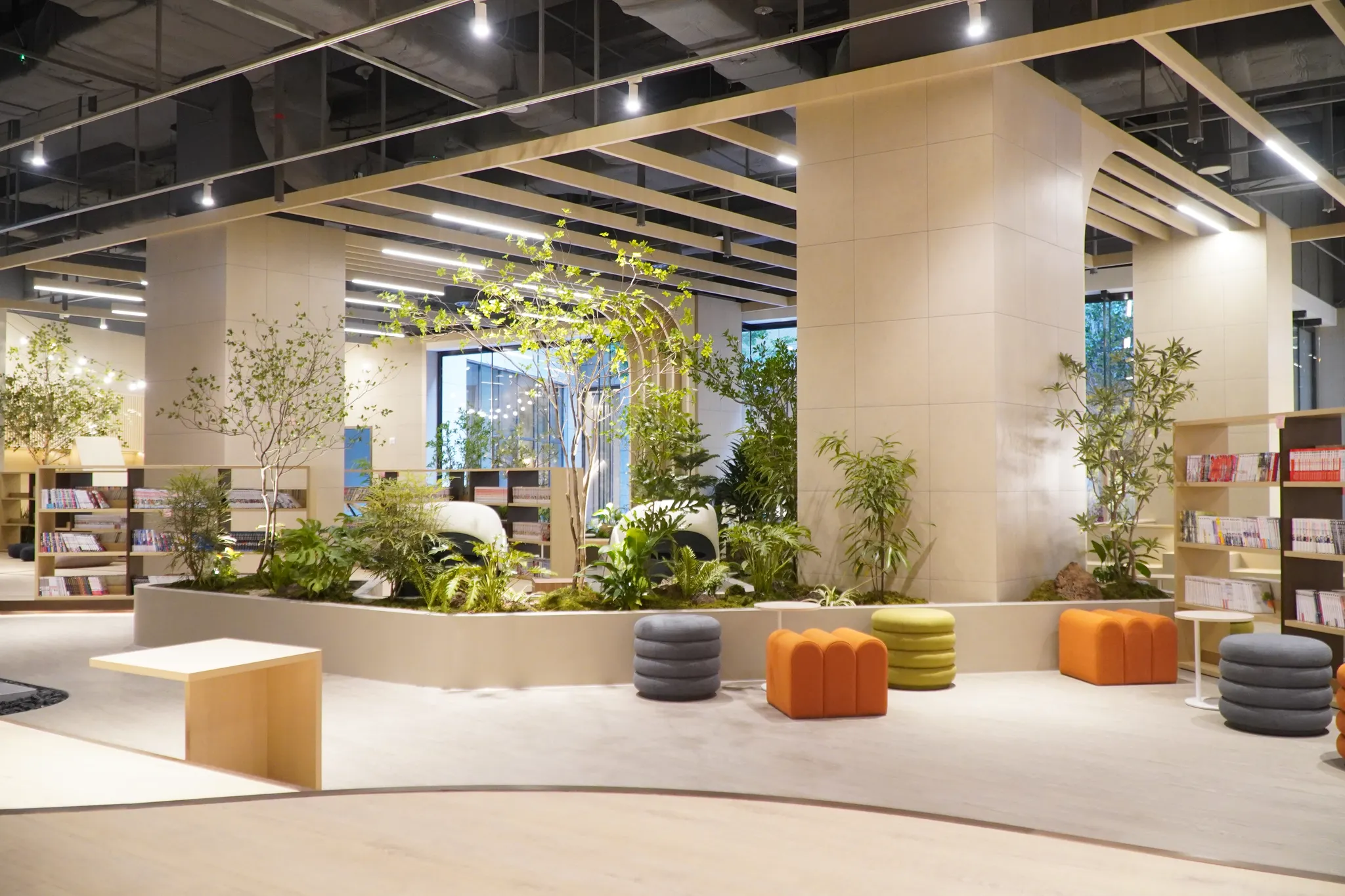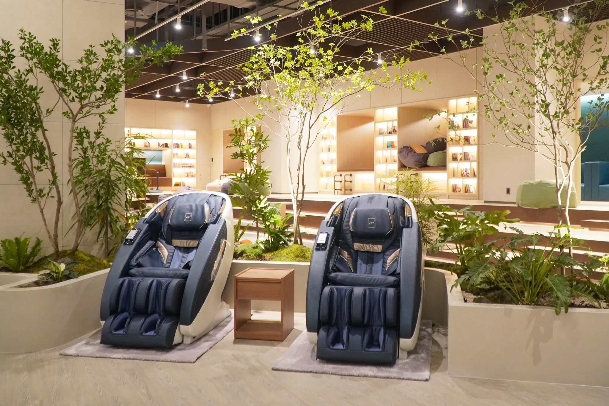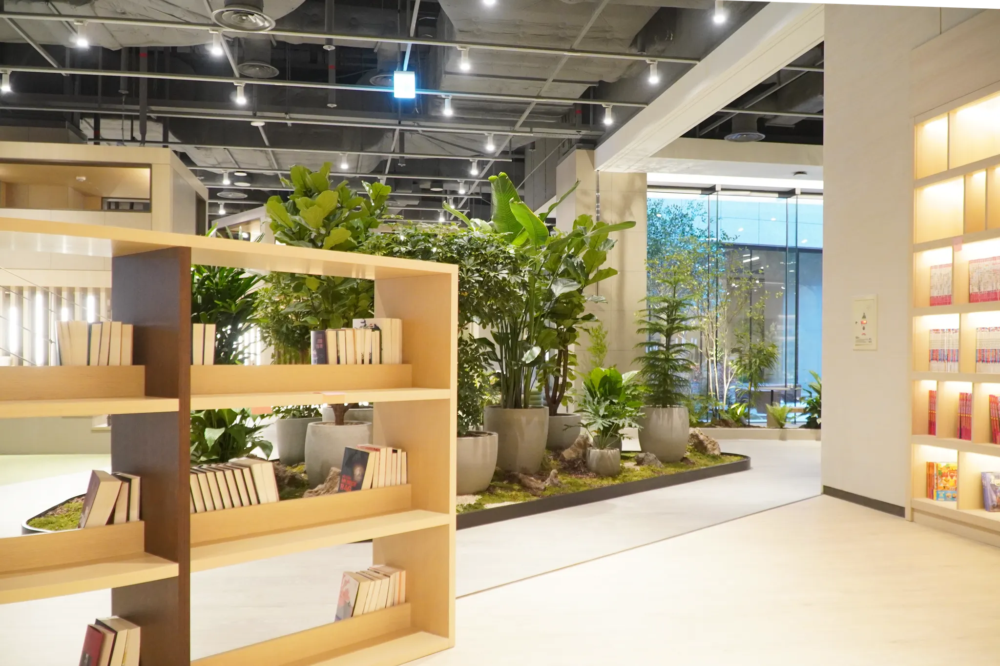 아웃도어 라운지 외에도, 내부의 그린케어존에서는 자연과의 교감을 통해 심리적 안정감을 제공한다는 의도 하에, 원시림을 재연하여 그린케어 효과를 극대화 하였습니다.