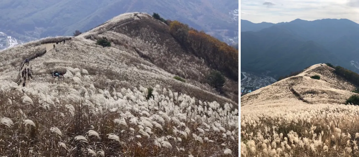 가을이 되고 억새 꽃이 피면 산 전체가 온통 은빛으로 물들어버려요! 가을바람이 산들산들 불면 그에 맞춰 춤추는 억새들을 보는 게 또 하나의 재미가 될 수 있죠