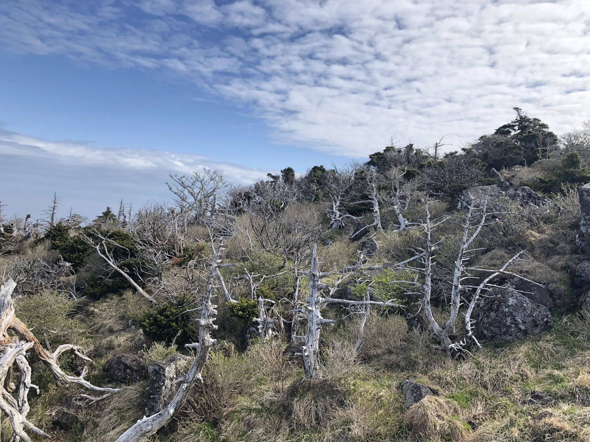 기후변화로 기온이 상승하고, 적설량이 감소하여 죽어가는 구상나무와 더불어 더이상 자라지 않는 어린나무들로 구상나무 숲은 계속 줄어들 것이라고 합니다. 특히 고도가 높은 남부지역에 적응한 북방계 식물인 구상나무는 기후변화에 더 민감할 수 밖에요