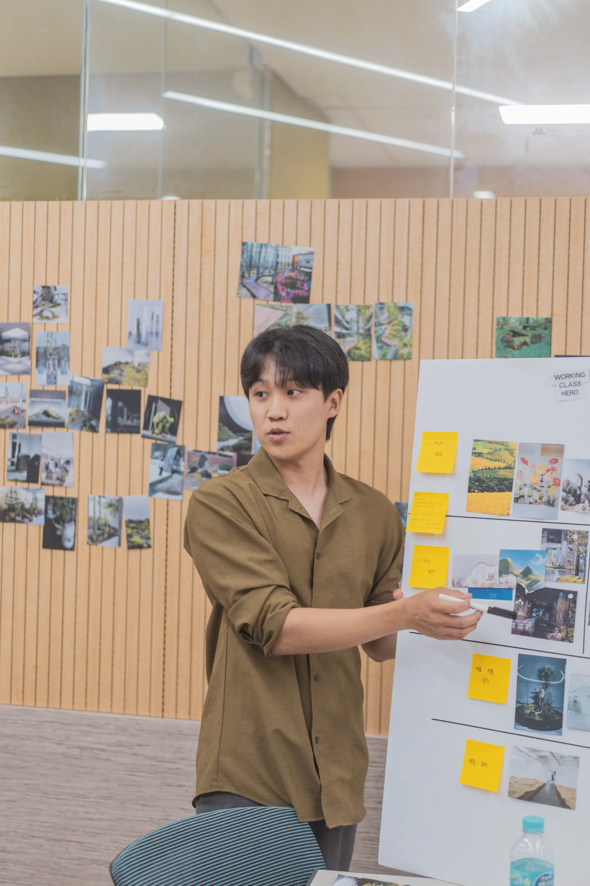 보드 작업을 통해 연출 스케치를 구성하고 실제 공간을 구현하는 것