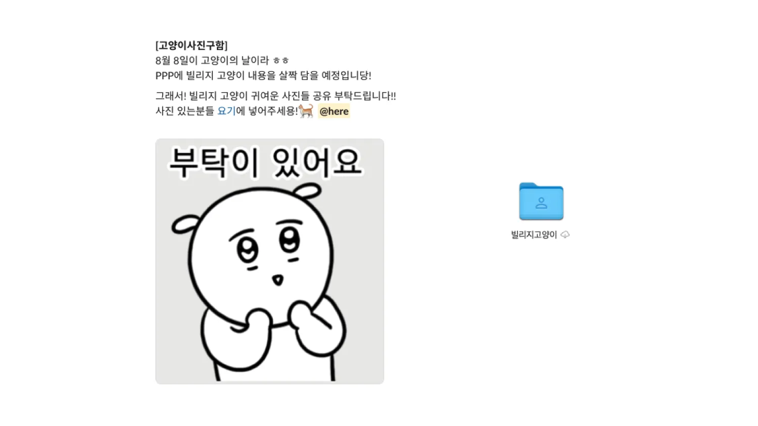 고양이의 날을 기념해, 빌리지 고양이 자랑하려고 크루분들이 그동안 찍어온 사진을 요청해봤어요!