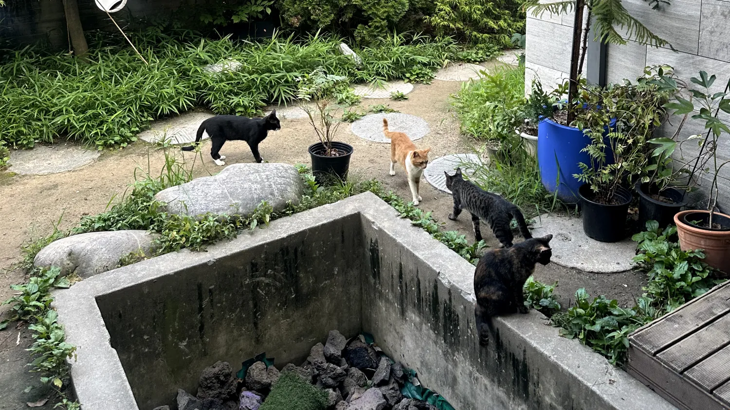저희 빌리지에 고양이가 많은 이유중 하나는, 비워지지 않는 사료 제공이랄까요..?