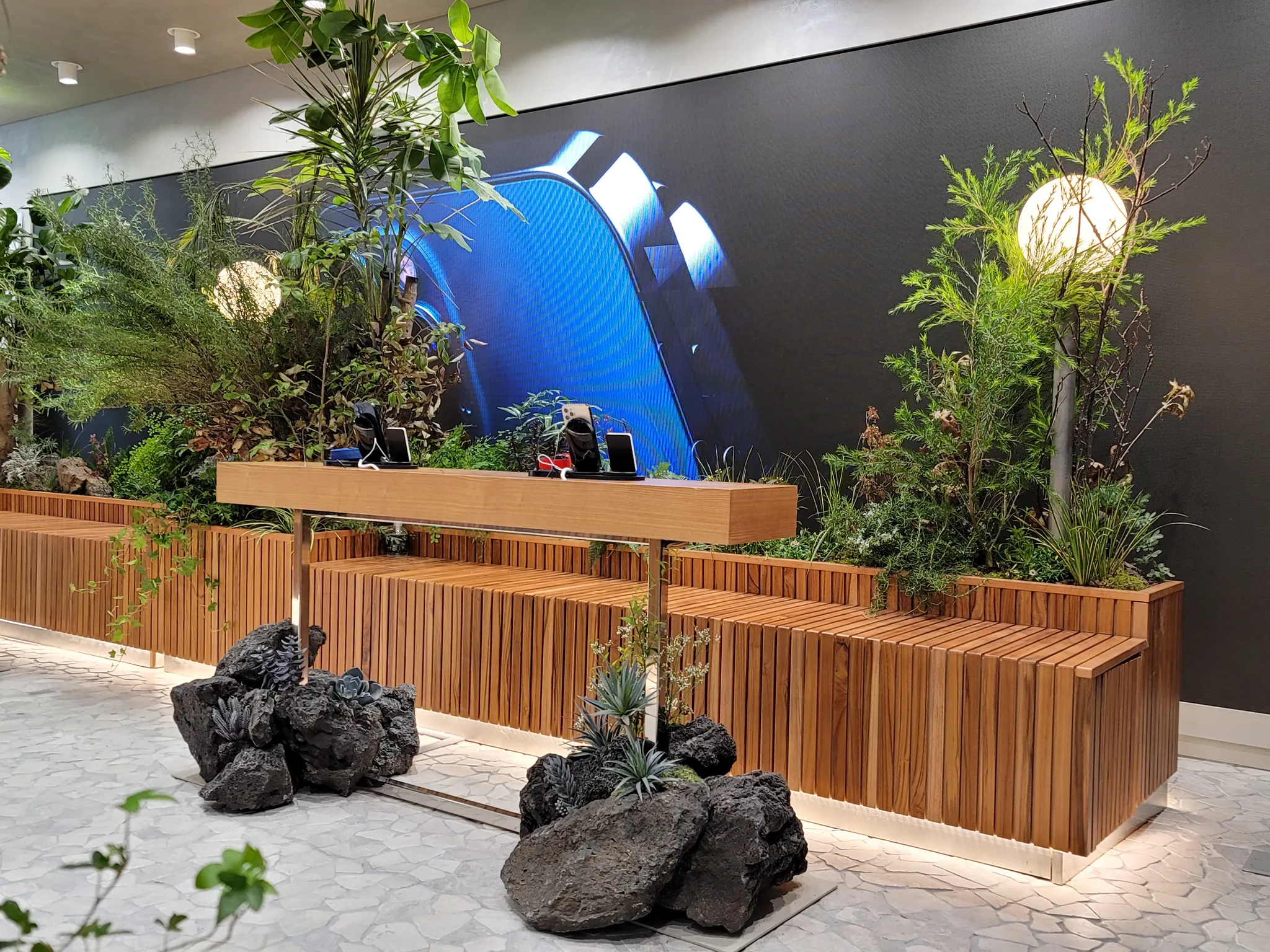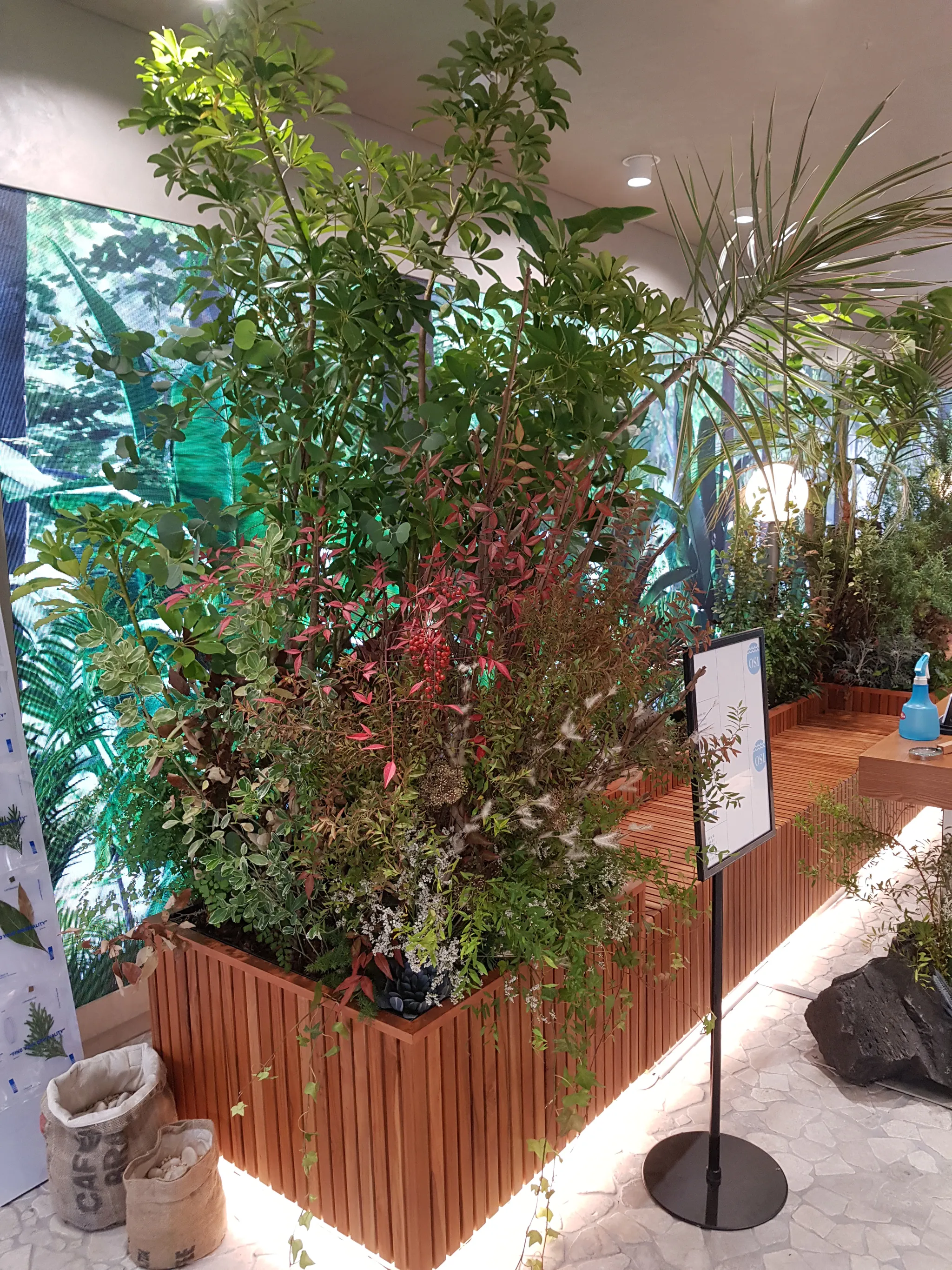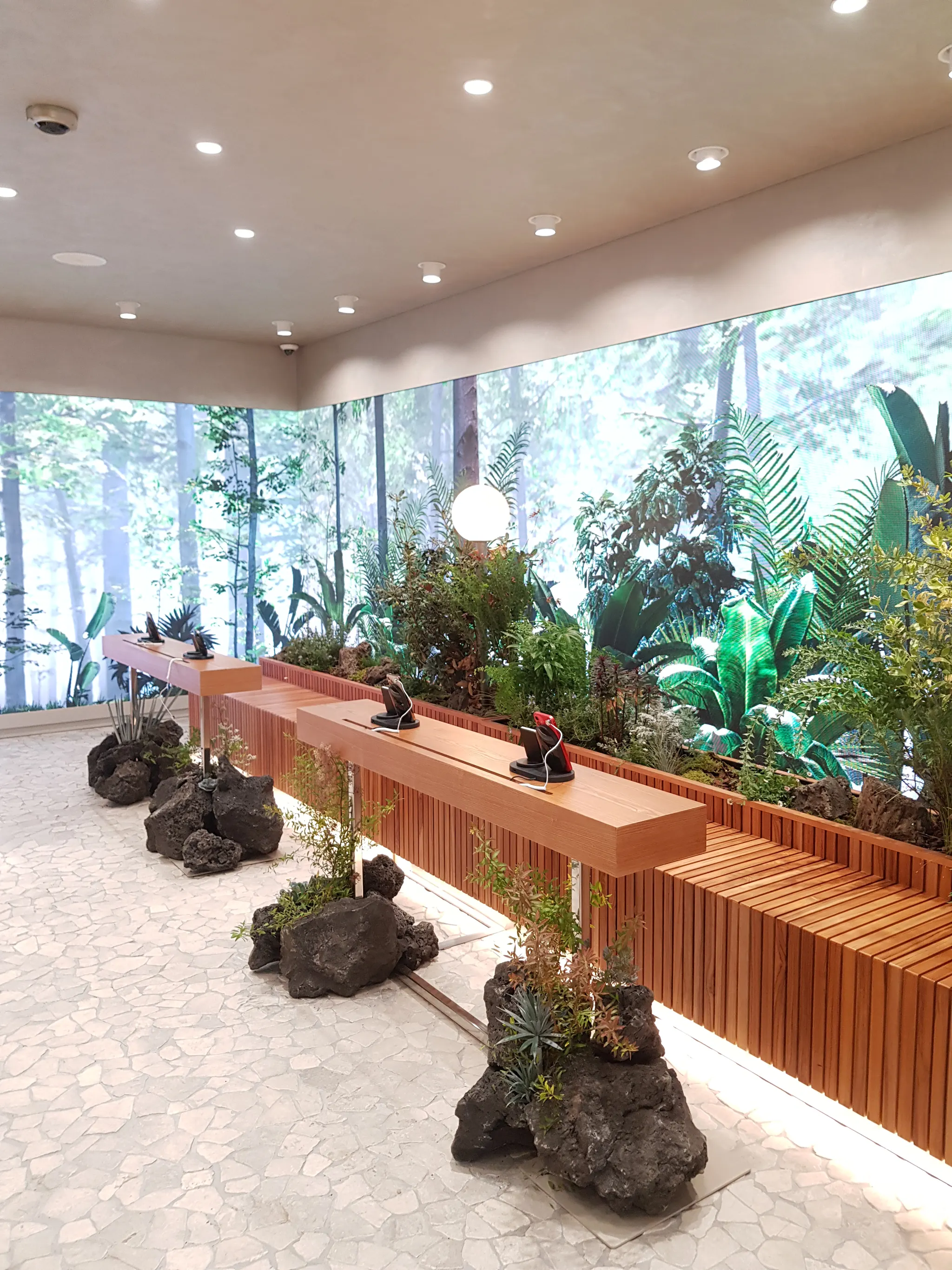 컨셉에 맞춰 정갈하고 깔끔한 연출이 아니라 식물의 본질을 보여줄 수 있도록 디자인했습니다. 키가 큰 식물, 작은 식물 그리고 이끼와 작은 꽃은 함께 공존하며 살아가는 식물의 본질을 보여줍니다. 선반 하부에 배치한 화산석은 먼 미래에 화석으로 발견되는 식물을 상징합니다. 과거를 밝히기 위해 화석을 연구할 미래를 생각하며 또 다른 식물의 본질을 표현했습니다.